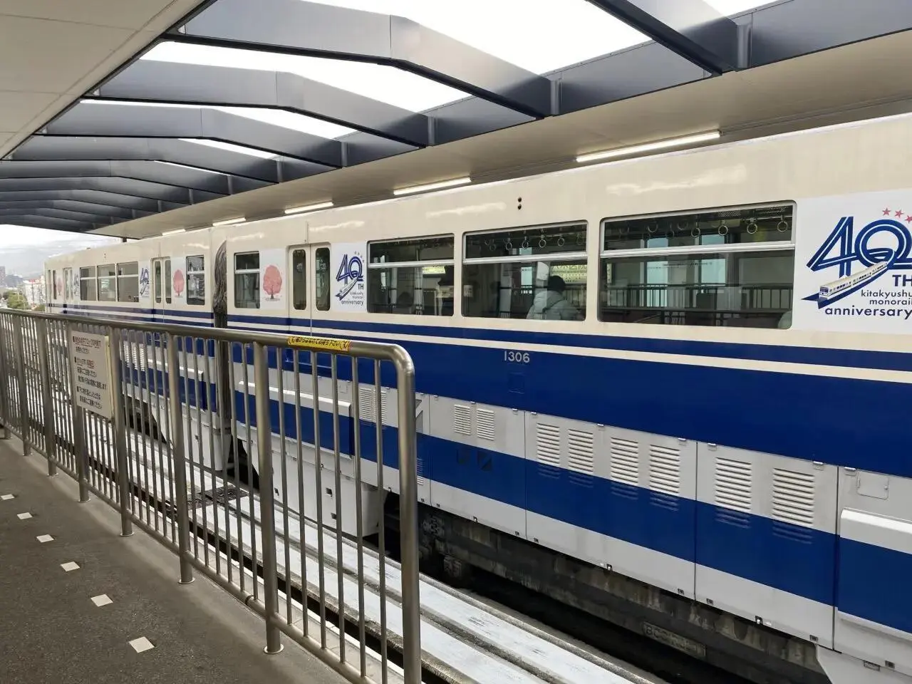 小倉駅の駅ビルをイメージしたボーダー柄の上に北九州モノレールの車両を描いたデザインは、駅ビルの中に駅があり、ビルの中からモノレールの車両が出てくる小倉駅ならではの光景が表現されています。