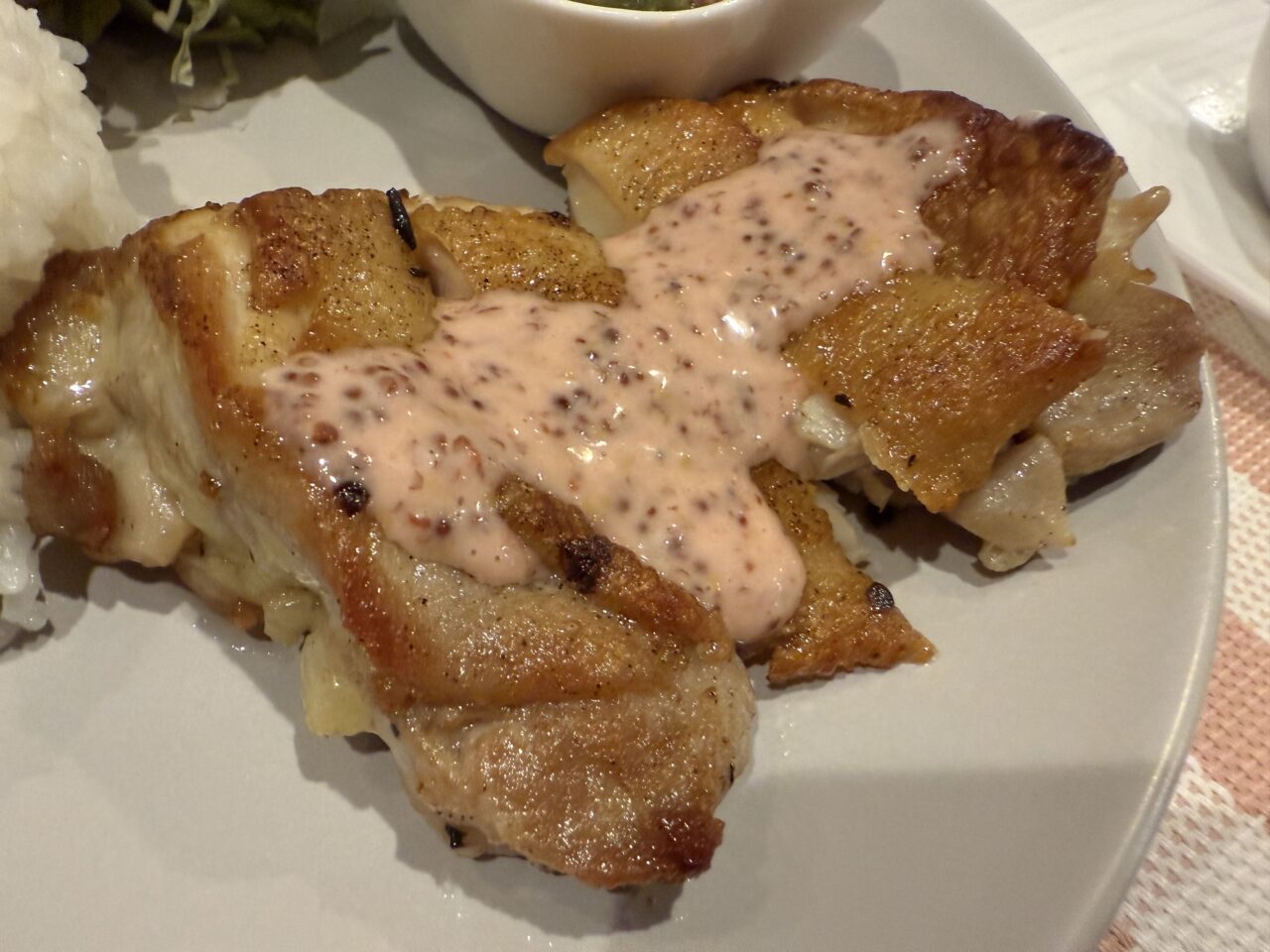 この日の日替わりランチプレートは「カシス&ハニーマスタードのチキンステーキ」。