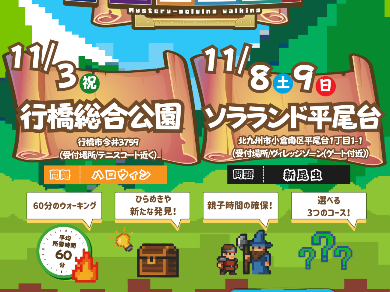 2025年11月8・9日ソラランド平尾台で「謎解きウォーキング-アルクエスト−」が開催されます!