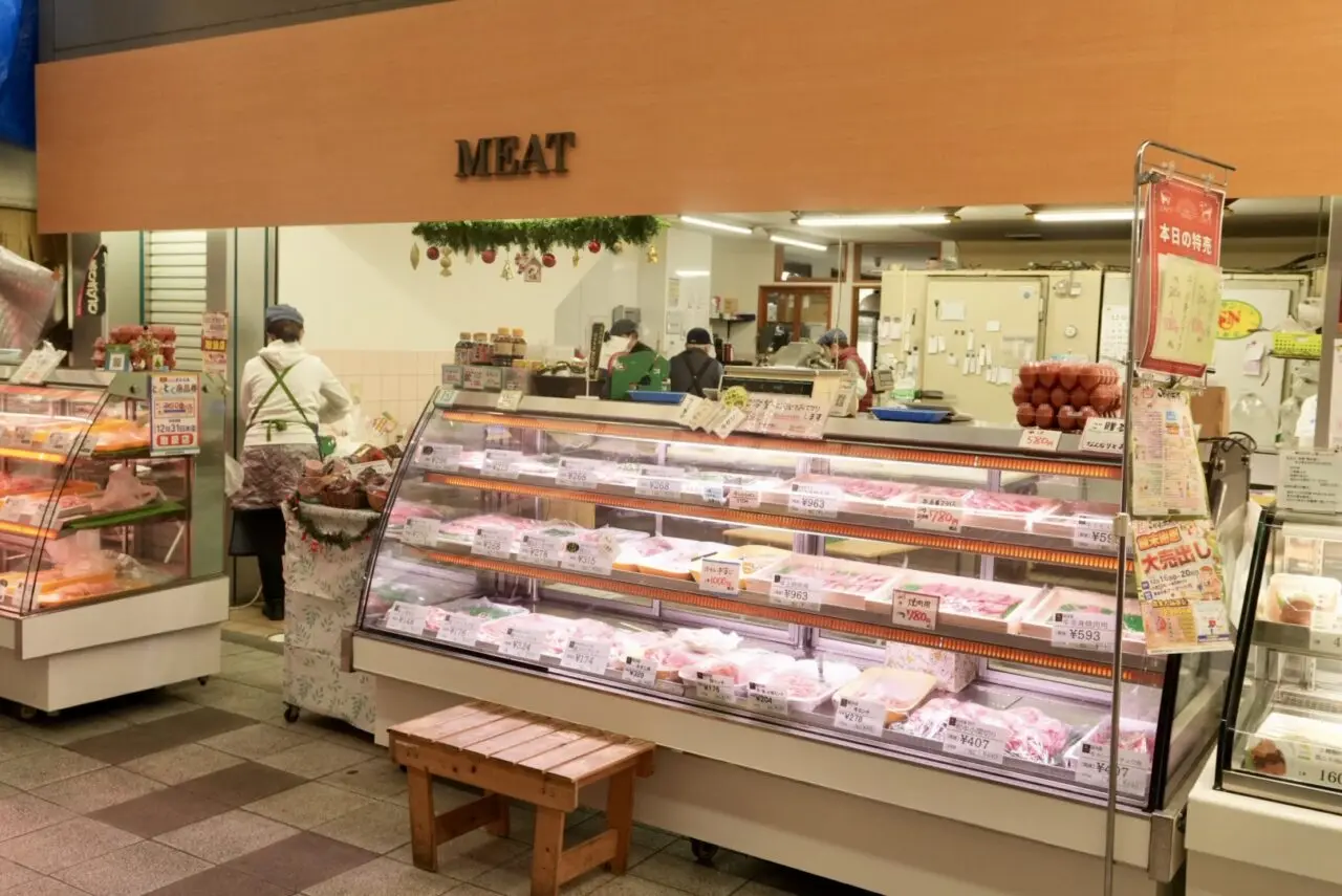 産地にこだわりいいものを提供したいという想いから、お店で捌いたお肉がショーケースに並びます。