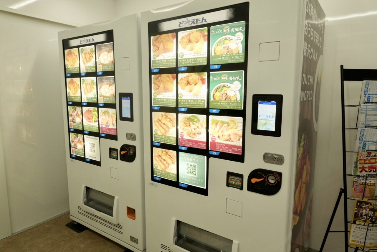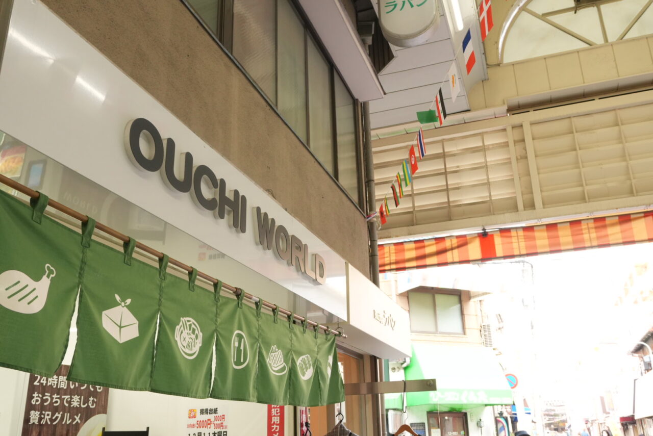 こがね市場商店街の入り口あるのが「おうちワールド」。冷凍自販機でデリカワールドで手作りした商品を販売しています。
