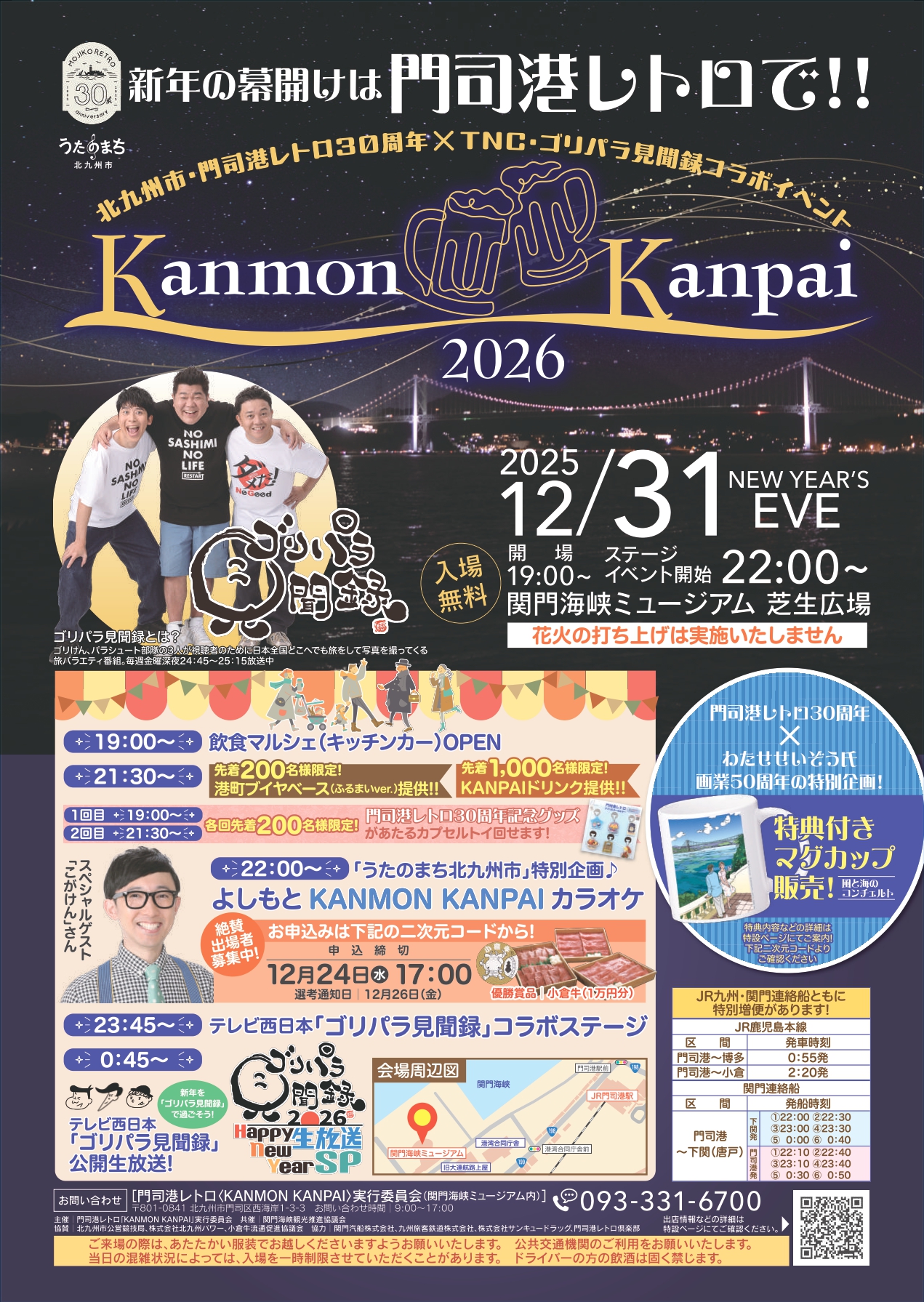 2025年12月31日、門司港レトロで「KANMON KANPAI 2026」が開催されます。