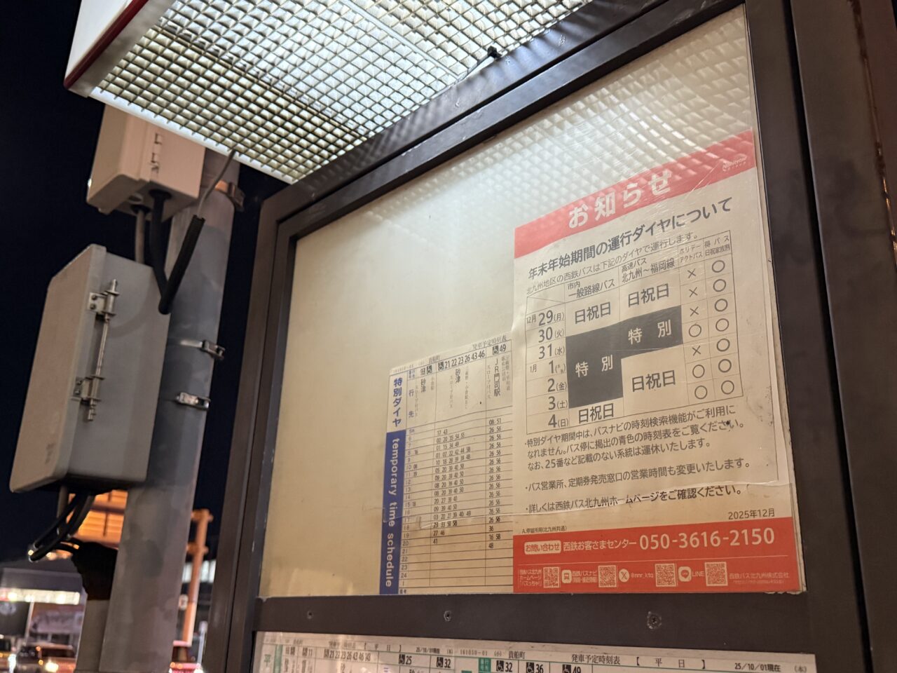 北た州地区の西鉄バスは下記のダイヤで通行します。