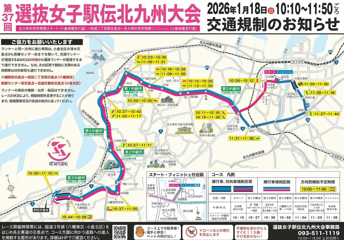 【北九州市】2026年1月18日「第37回選抜女子駅伝北九州大会」が行われます。交通規制が行われます。