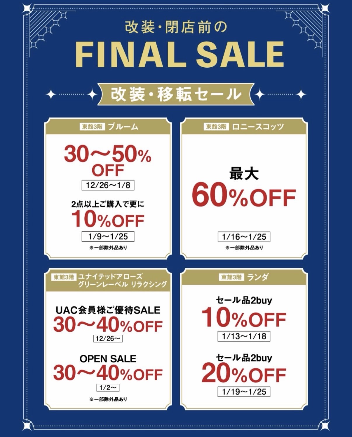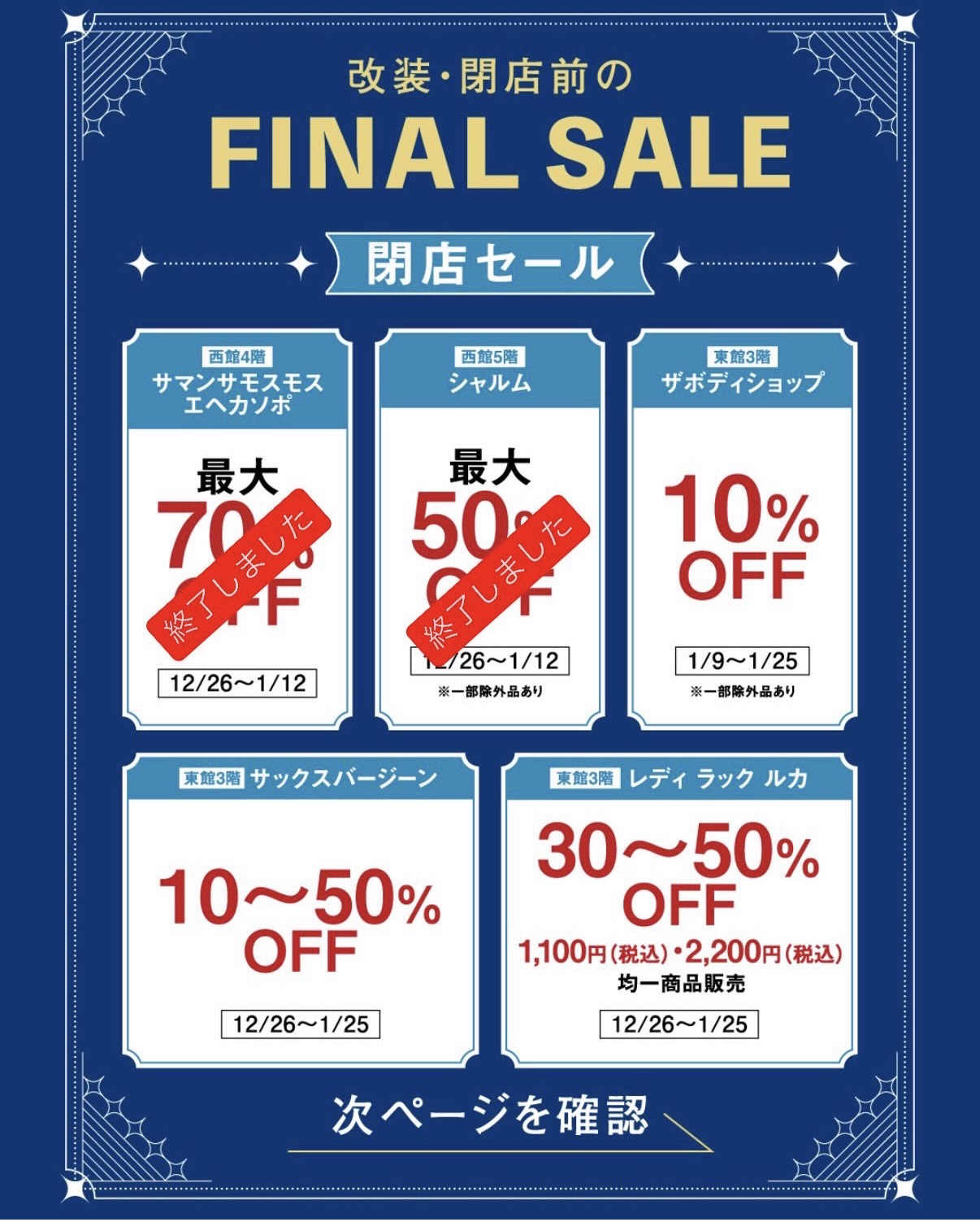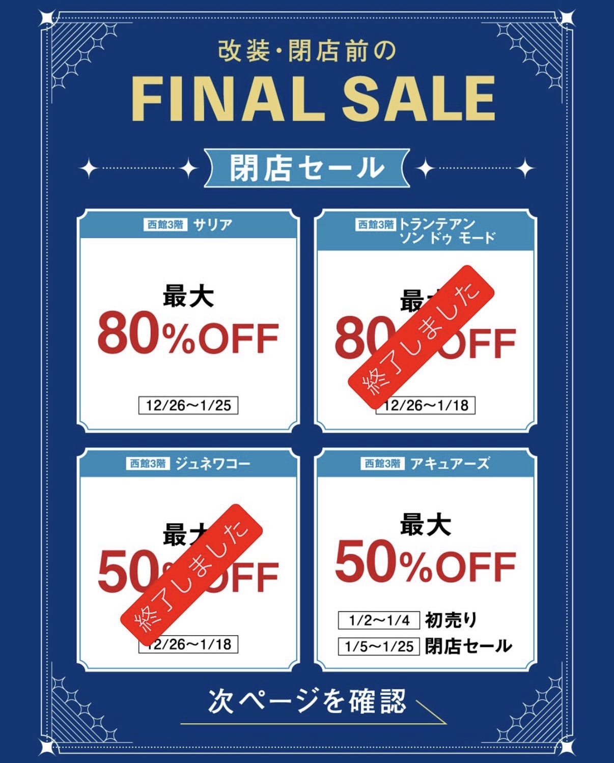 2025年12月26日から改装・閉店前の「FINAL SALE」が開催されています。