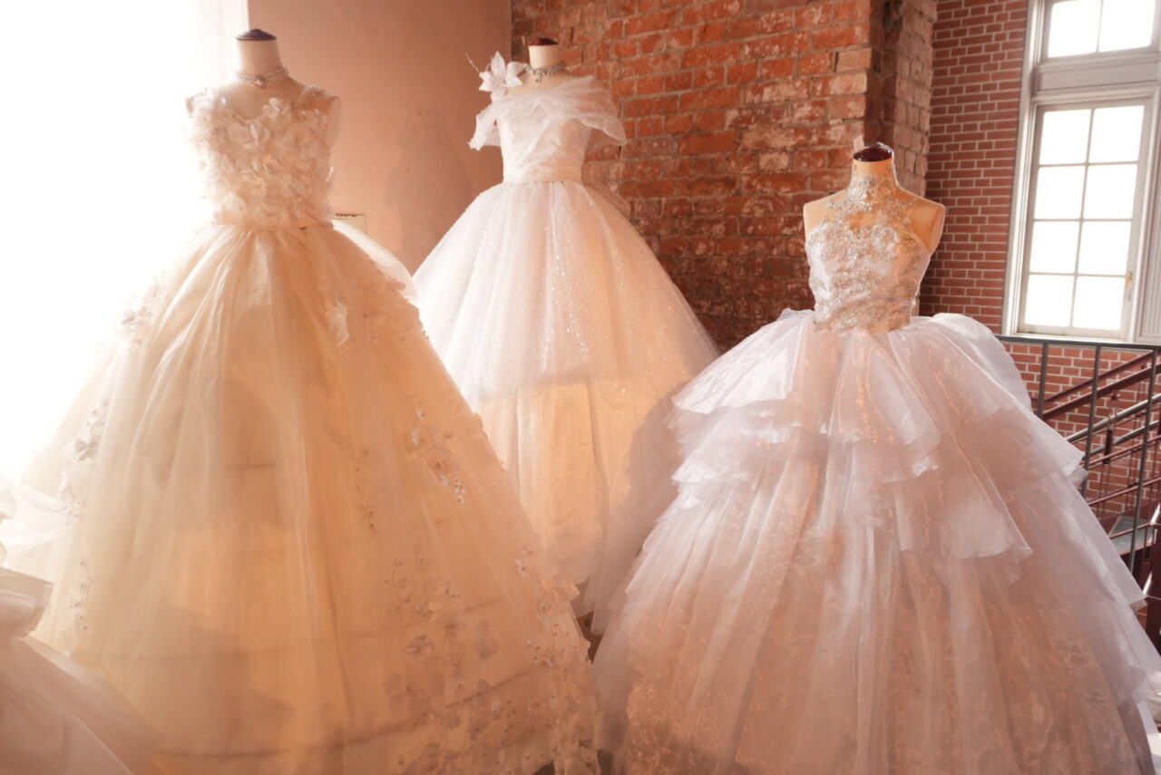 ひとつとして同じデザインのものはなく、どのドレスもキラキラと輝いています。