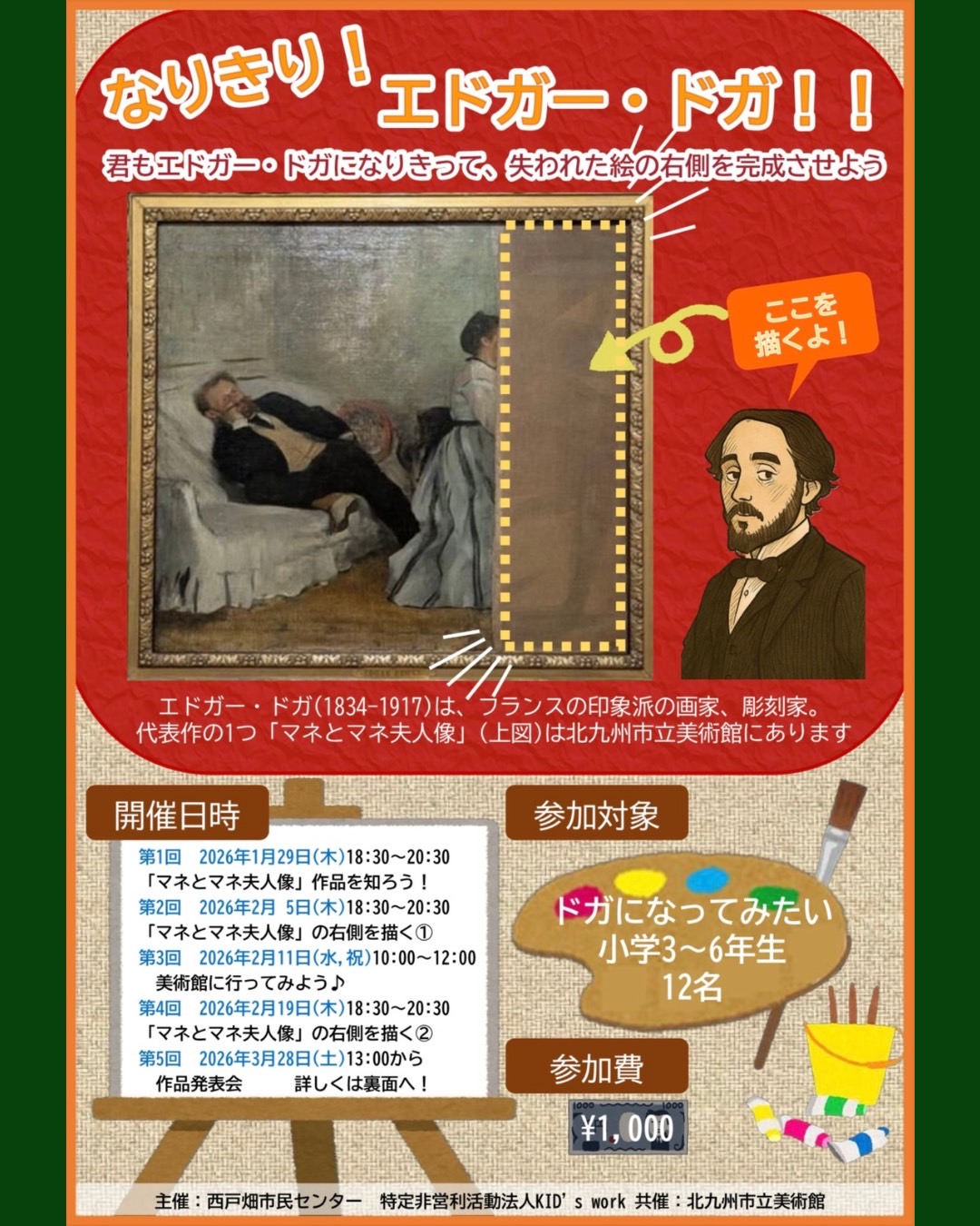 【北九州市戸畑区】戸畑区内の小学生の皆さん!「なりきり!エドガー・ドガ!! ~君もエドガー・ドガになりきって、失われた絵の右側を完成させよう~」が始まります!