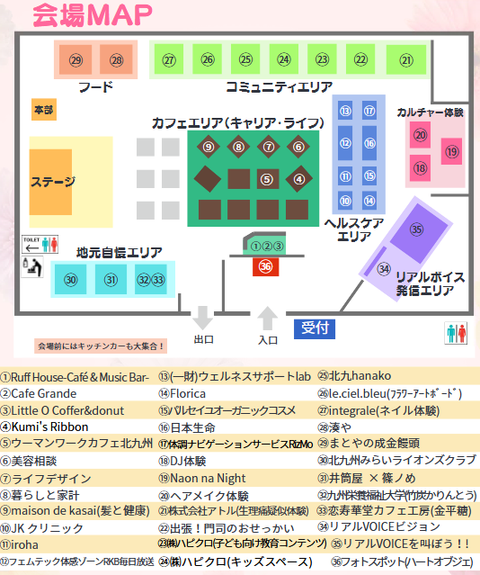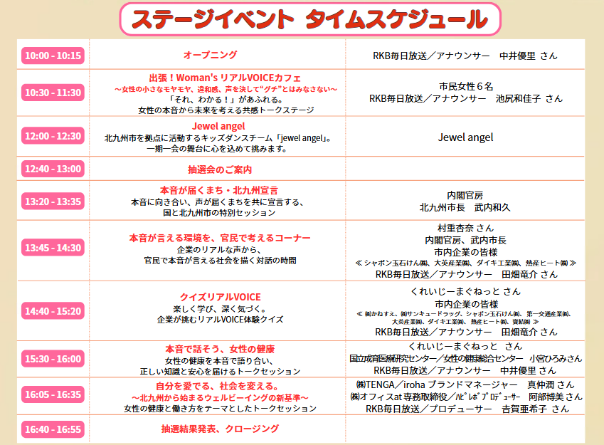 女性のリアルVOICEを 見る・感じる・表現する展示ブース、キャリア・ライフに関する様々なテーマでモヤモヤを語り合える《出張リアルVOICEカフェ》、コミュニティ/ヘルスケアなどをテーマにした体験コンテンツ、そしてゲストによるステージなど、多彩なプログラムが予定されています。