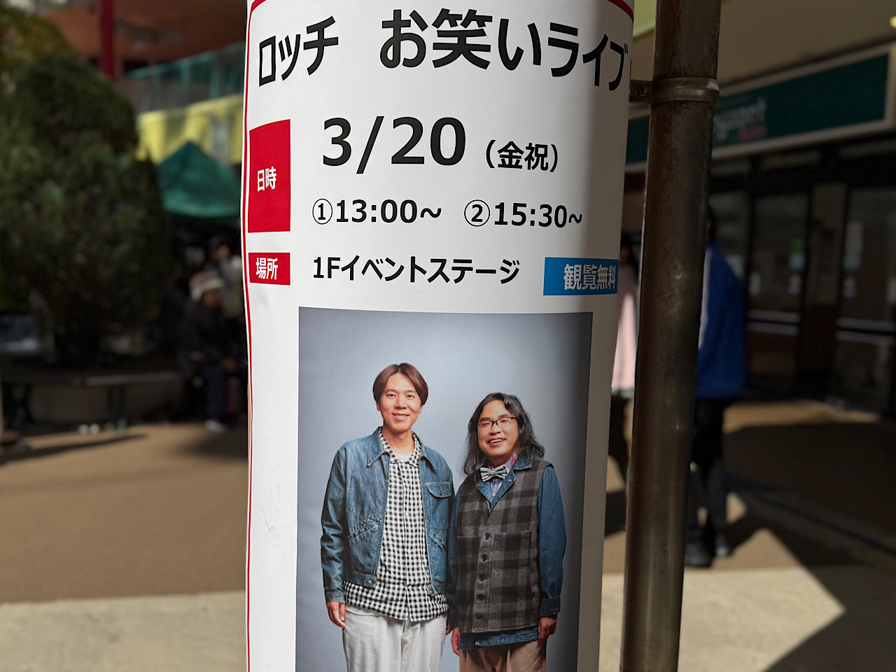2026年3月20日、チャチャタウン小倉1階で行われるイベントステージで「ロッチ お笑いライブ!」が開催されます。