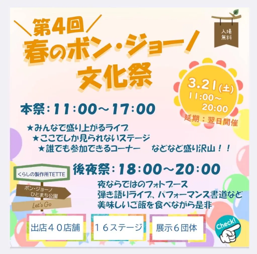 「誰でも参加できる!」ということでBONJONOに行ったことない方、気になっていた!という方にもおすすめです。春のボンジョーノ文化祭へご家族やご友人とお出かけになってみてはいかがでしょうか?