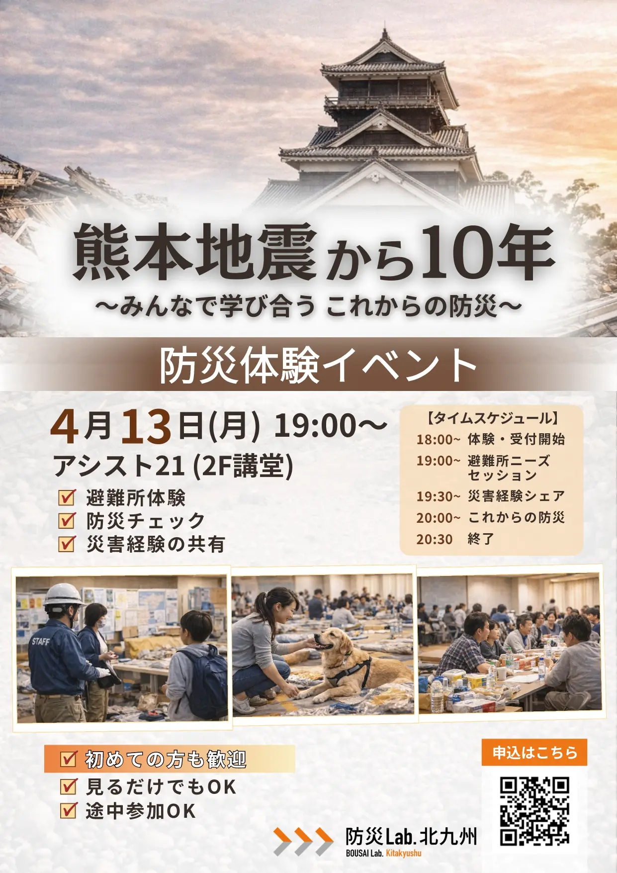 【北九州市小倉北区】この機会に「防災」について考えてみませんか?2026年4月13日「熊本地震から10年 〜みんなで学び合う これからの防災〜」開催へ
