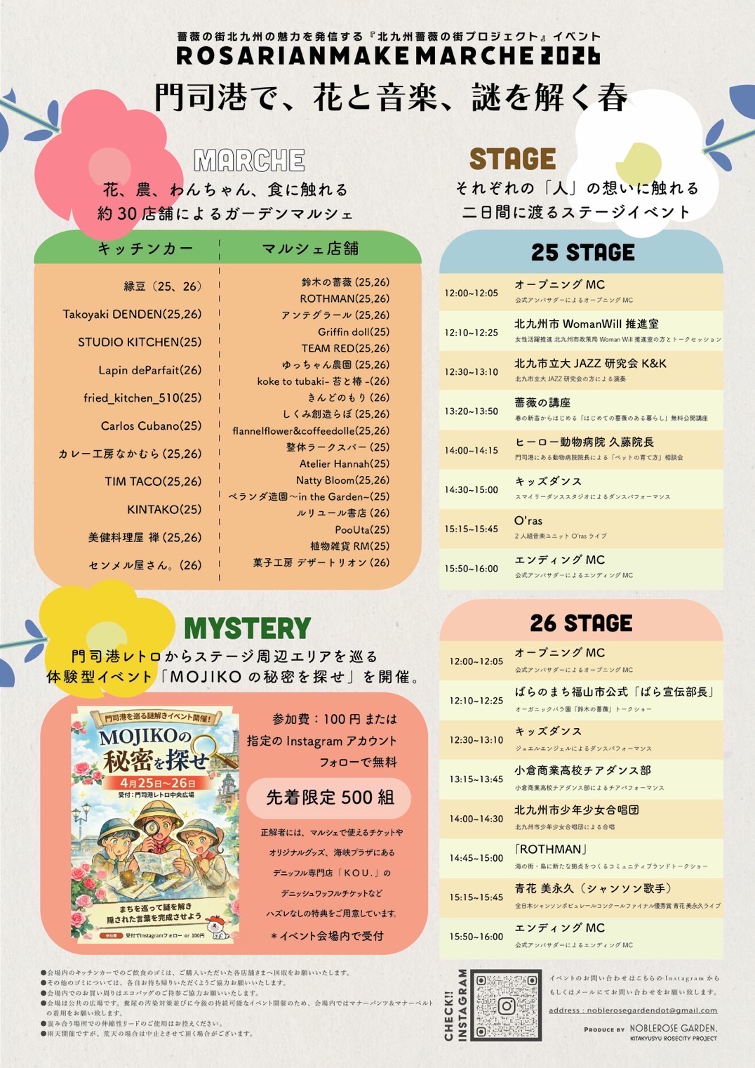 今回は2026年4月25日・26日の2日間、門司港レトロ中央広場にて門司港で花と音楽を楽しむイベント「ROSARIANMAKE MARCHE 2026」が開催されます。